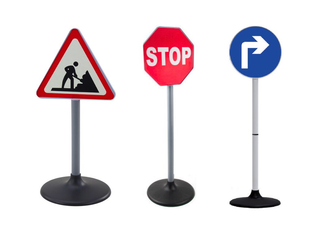 Sada dopravních značek Road Signs uspokojí každého malého řidiče. Lze je využít venku i doma. Snadno se rozkládají a můžete je rozmístit do podoby jakékoliv křižovatky nebo cesty. Dítě se s nimi snadno naučí pravidla provozu a jsou ideální pro jízdu na kole nebo v elektrickém vozítku. Hračka je určena pro děti od 3 let věku.